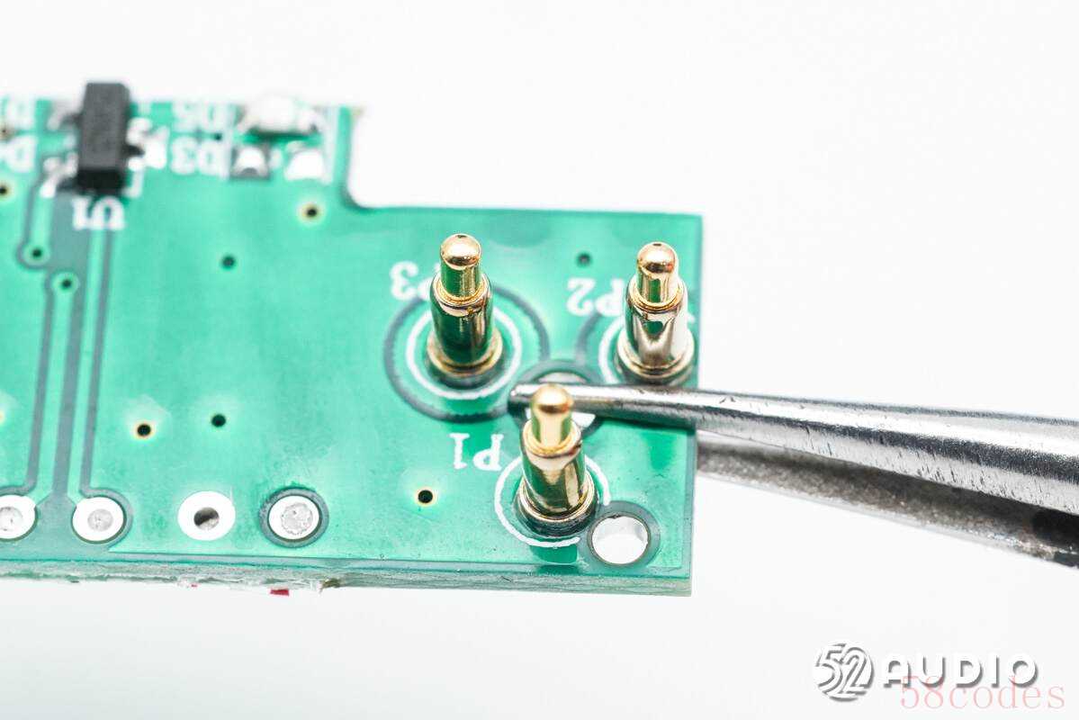 电源输入小板上,设置三颗金属铜柱,用于连接充电盒充电。