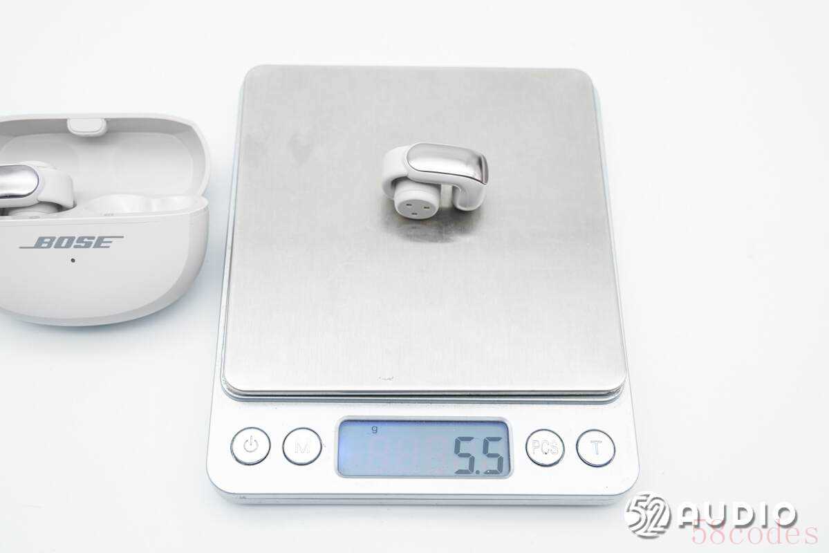 经我爱音频网实测,华强北版BOSE ULTRA开放式耳机整体重量约为51.5g。