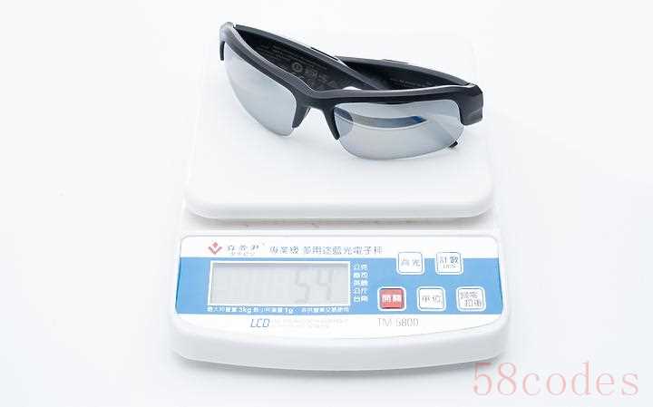 看到Bose墨镜耳机运动款的外型设计,或许会有不少人觉得这款墨镜应该颇具份量,不过实际测量后单墨镜重量仅有54g,搭配携带盒与充电线的重量则为128g ,算是相当轻巧的配重设计。