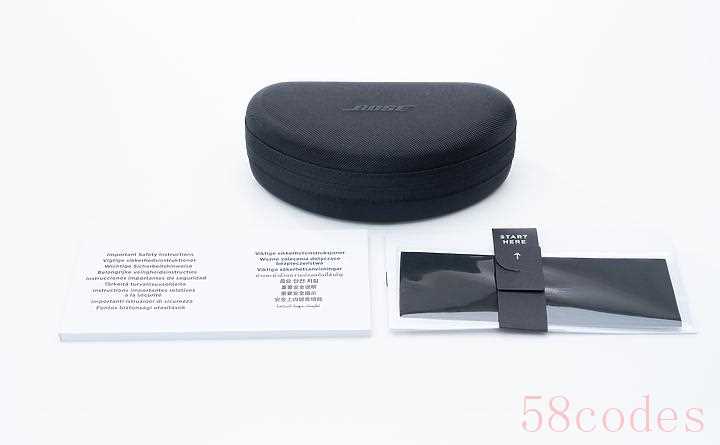 首先,BOSE运动款墨镜耳机的包装非常简约,以黑色为主色调,正面印有产品名称和品牌logo。打开包装后,我们可以看到墨镜耳机本体、一个收纳盒、一根充电线和一个说明书。