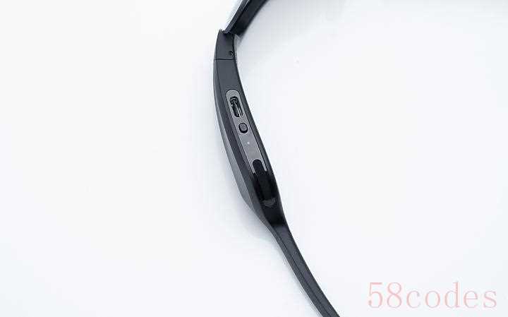 Bose 墨镜耳机运动款也在左右镜架下方,搭载特别设计的Bose 扬声器,搭配独家的开放式听觉技术,与声音朝向定位技术,右侧镜架下方则可以看到USB-C 充电埠与实体操作按键,这颗按键则是用来进行电源开关与蓝牙配对的等操作功能按键。