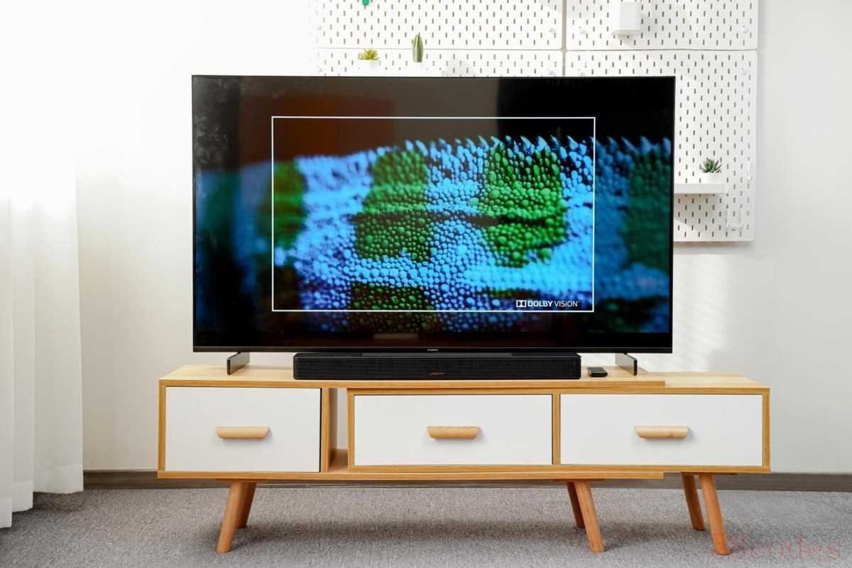 回音壁相比传统的分体式家庭影院系统,拥有更加小巧的体积和灵活的布置方式,Bose家庭娱乐扬声器550就是一款非常纯粹的回音壁形态的产品。它的外形精巧,机身仅长69厘米,高度不到6厘米,即使和市面上其他回音壁比起来也属于非常“苗条”的水平,这样在搭配底座安装的电视时不容易对屏幕或者下方的红外遥控接收器造成遮挡,再加上10厘米的机身宽度只会占用有限的空间,对极简风格的窄电视柜很友好。