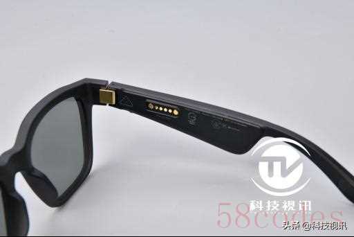 Bose Frames Alto采用磁吸式触电充电线,其触点在眼镜右镜脚内侧,官方配备了触点充电线。这样子的设计非常方便,常规接口需要的深度和宽度它不必去考虑,另一个方面也非常美观。