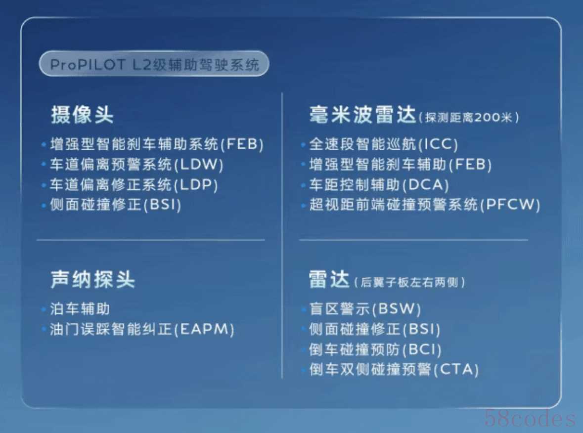 据悉,2026款改款英菲尼迪QX50将搭载ProPILOT L2级辅助驾驶系统,支持增强型刹车辅助系统、车道偏离预警系统、全速自适应巡航、车距控制辅助、前端碰撞预警、泊车辅助、盲区预警、倒车碰撞预警等功能。