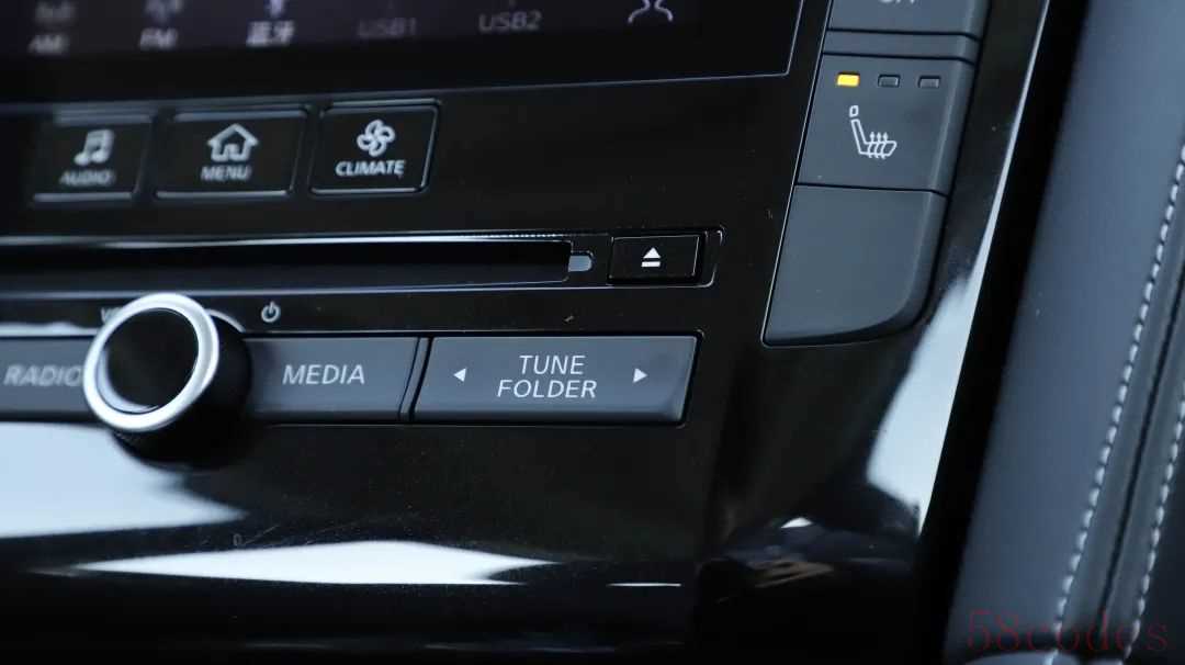 大屏当道的年代,QX50依旧保留了很多富有工业化气息的物理按键,8英寸下屏的两侧以及下方集成有空调控制、多媒体控制、座椅加热等诸多控制按键,配合屏幕内复古风的UI设计,着实令人印象深刻。DVD播放似乎已经逐渐淡出了我们的视野,但对于部分音乐发烧友来说,仍然有着十足的魅力。