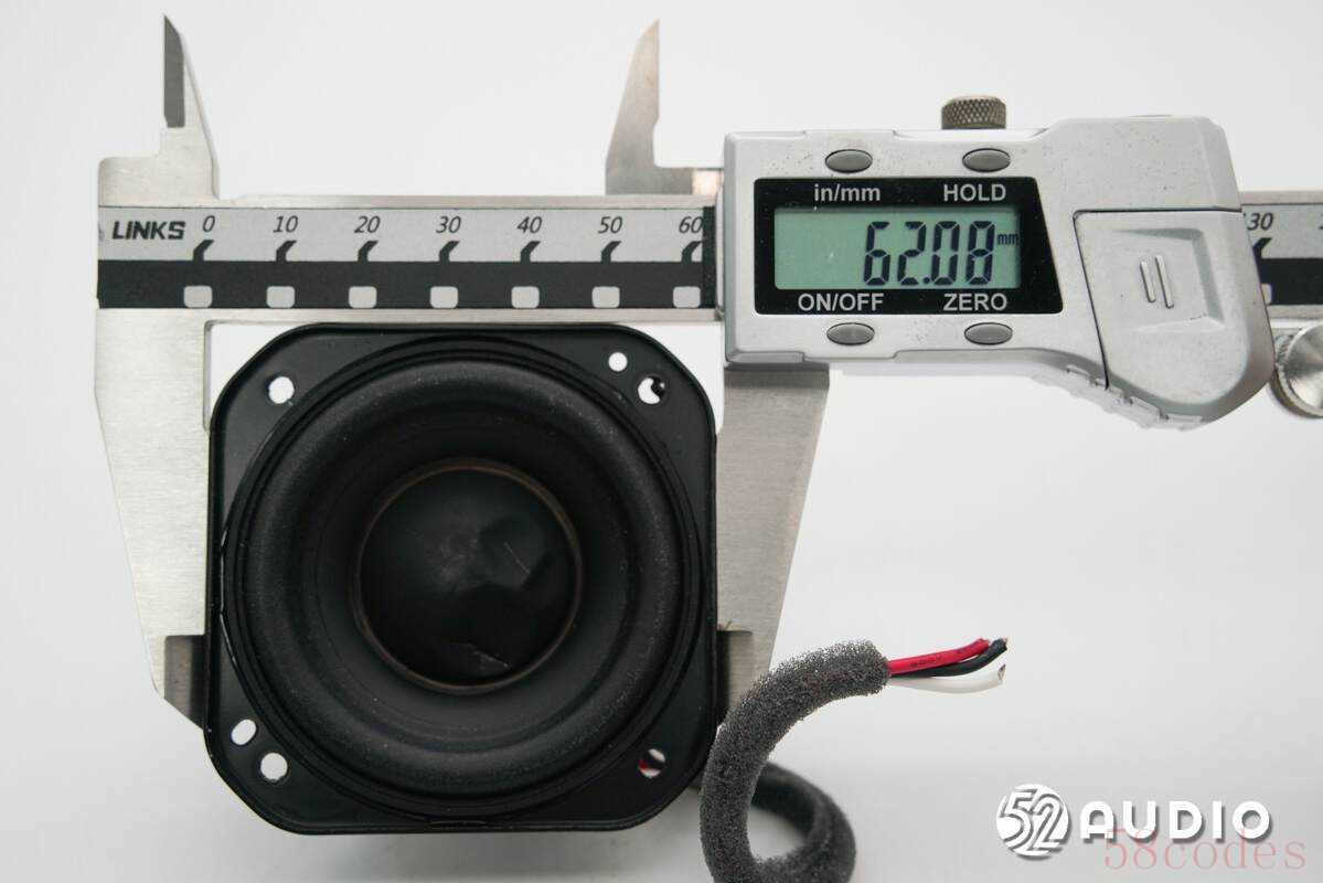 经我爱音频网实测,全频喇叭直径约为62mm。