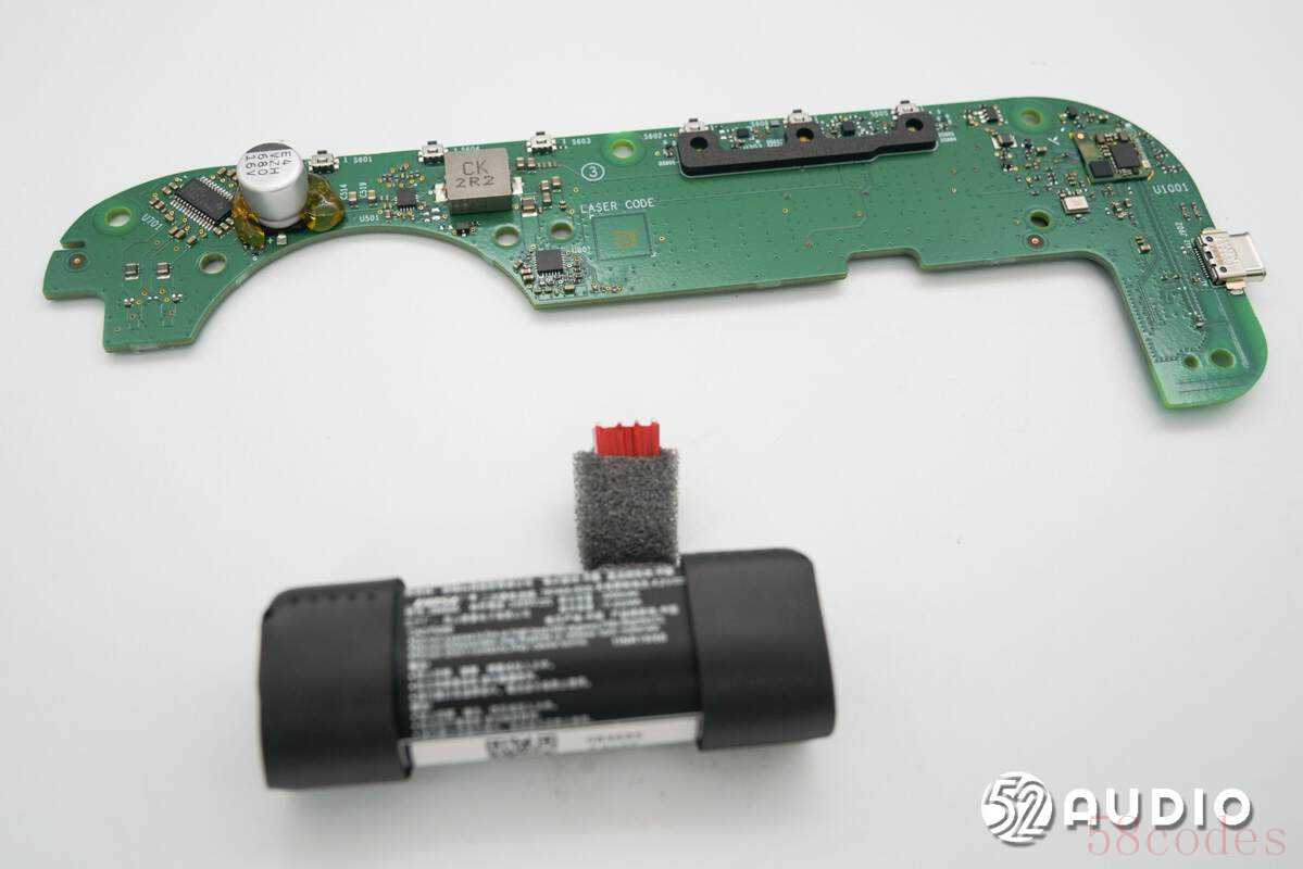 内部主要配置方面,BOSE SoundLink Flex蓝牙扬声器Ⅱ搭载了全频喇叭,配备双无源辐射器提升低频量感;内置电池容量3200mAh,配备电路保护板负责充放电保护。主板上,采用了Qualcomm高通QCC5181蓝牙音频SoC,TI德州仪器TPA3136D2 D类音频功率放大器,SGMICRO圣邦微SGM6612A升压转换器,TI德州仪器BQ25601充电IC等。