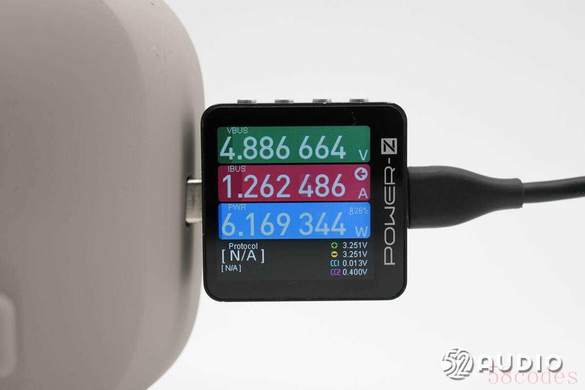 我爱音频网采用CHARGERLAB POWER-Z KM003C测试仪对BOSE SoundLink Flex蓝牙扬声器Ⅱ进行充电测试,输入功率约为6.17W。