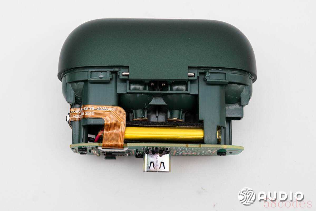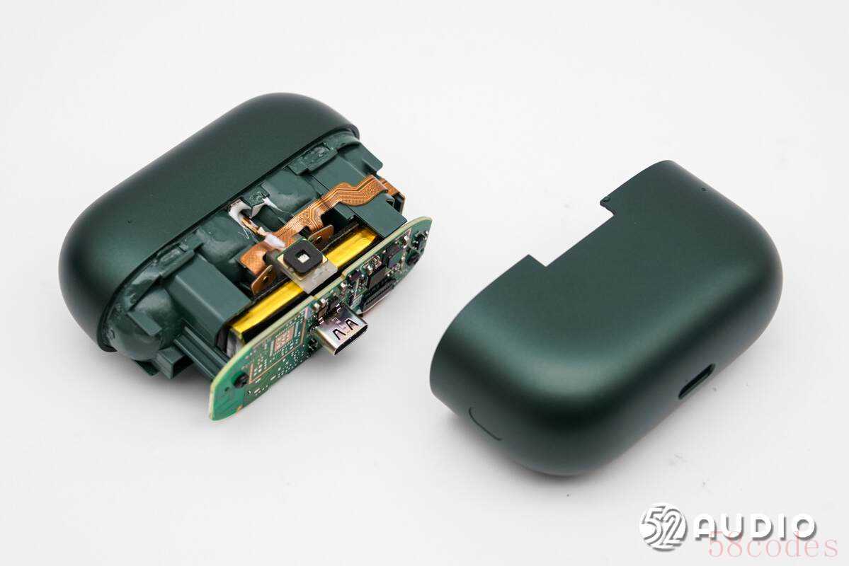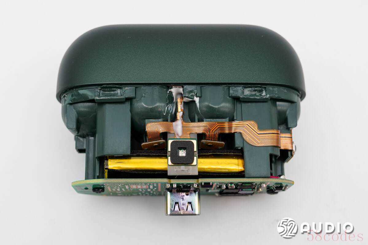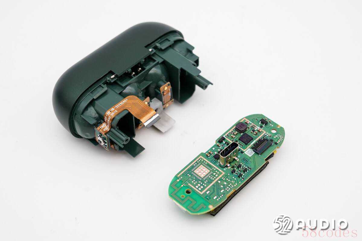 拆开充电盒外壳,取出卡扣式固定的座舱结构。