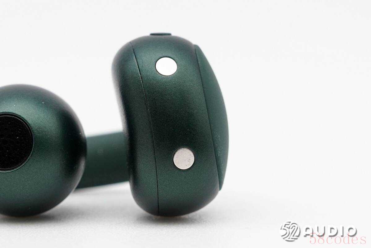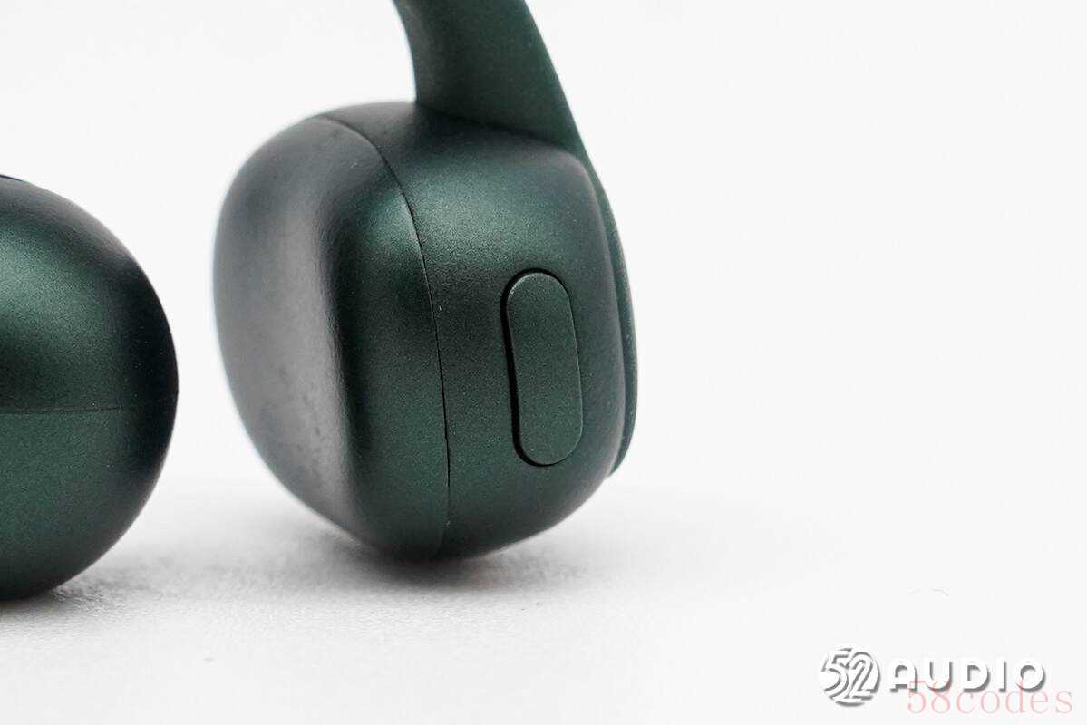 腔体内侧采用了弧形设计,更加贴耳耳廓外侧。腔体侧边设置一颗功能按键,实现多功能控制。