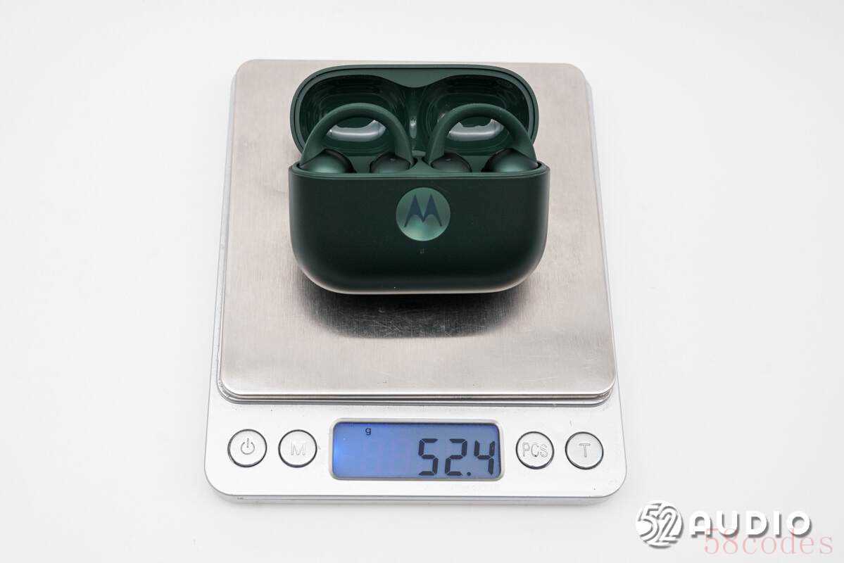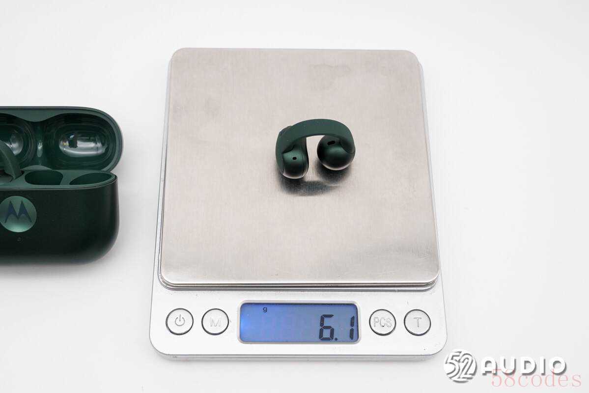 经我爱音频网实测,联想moto buds Clip开放式耳夹耳机整机重量约为52.4g。