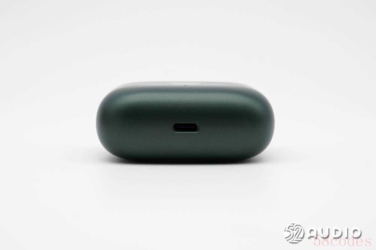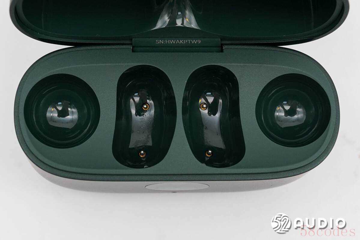 取出耳机,座舱内部结构一览,采用了光滑的亮面设计,防止耳机出现划痕。