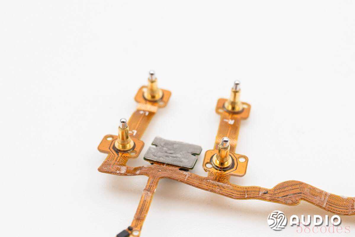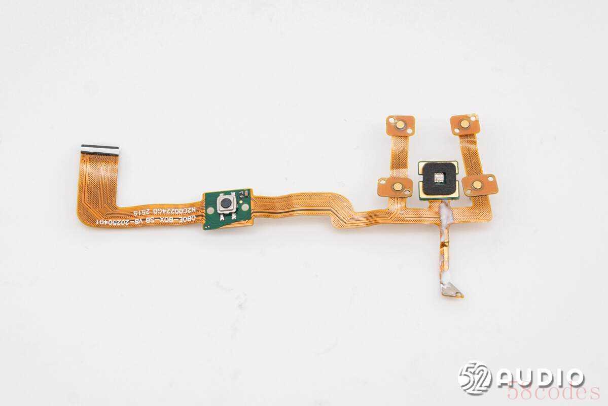 后腔底部结构一览,与主板连接的排线露铜连接PCB小板。