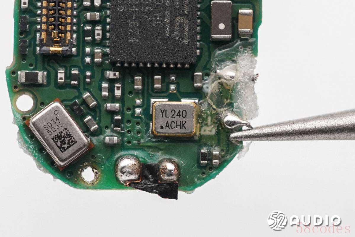 镭雕YL240的晶振特写,用于为蓝牙芯片提供时钟。