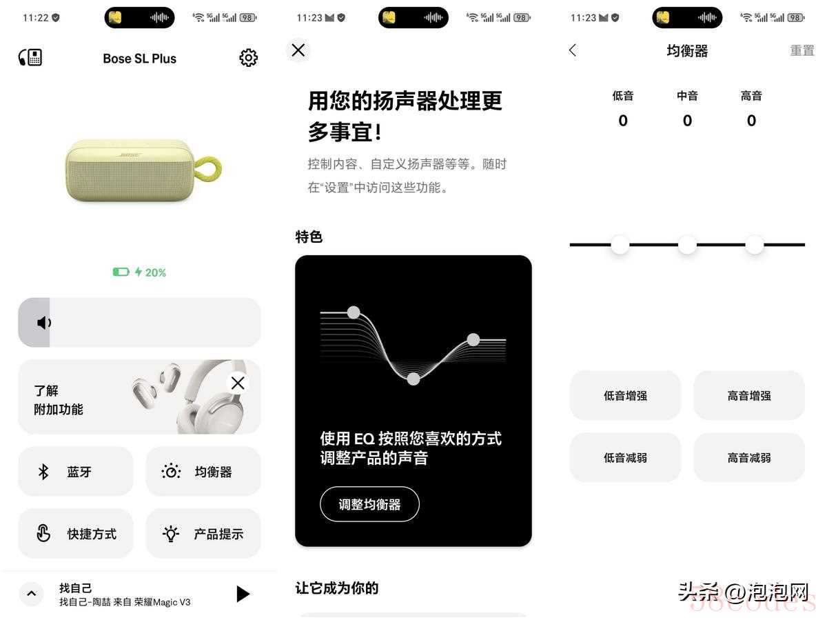 用户还可以通过 Bose APP 中的“动态音质均衡器”自由调节低音、中音和高音,根据个人喜好或不同音乐类型打造专属的听觉体验。无论是露营时想听一曲温暖的民谣,还是在湖边派对上播放节奏感强烈的电子乐,都能轻松调校出最合适的音色。