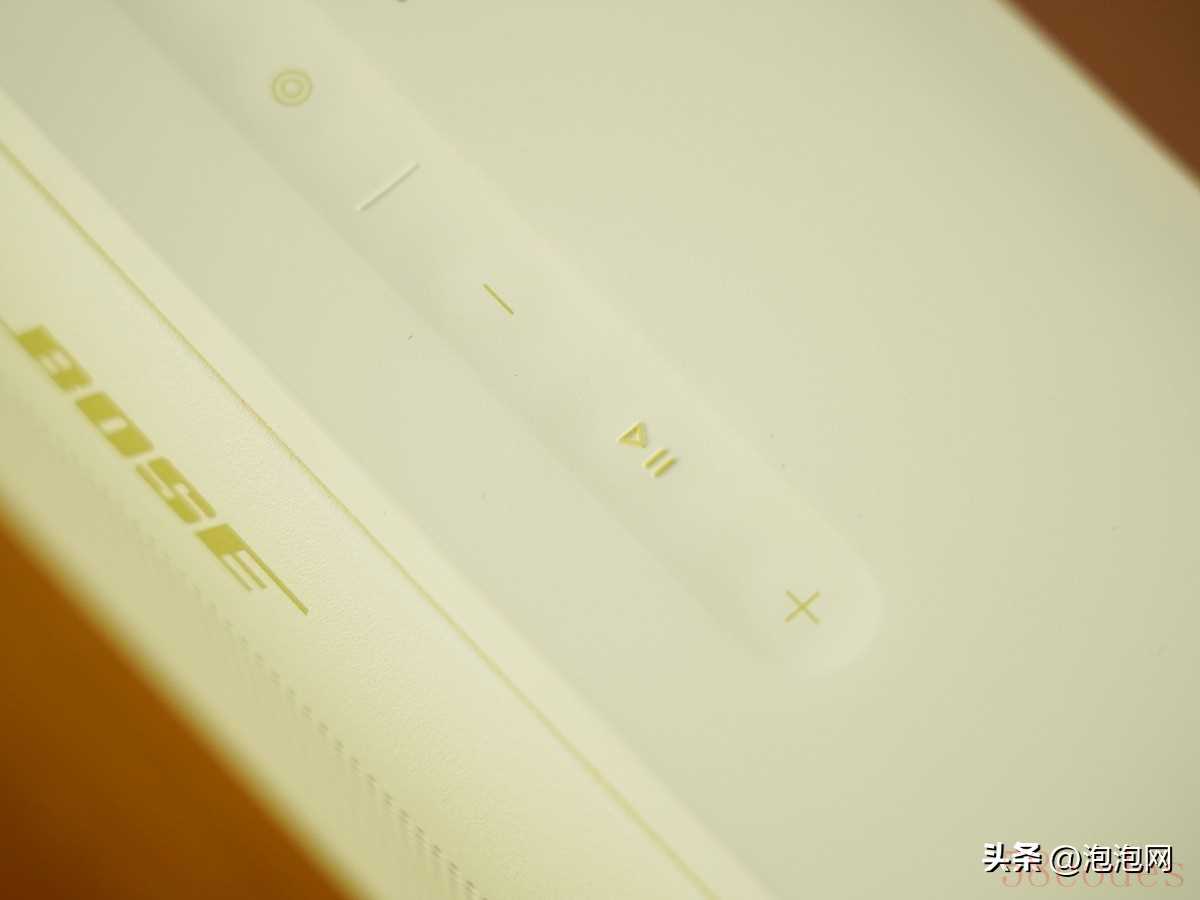 按键位于机身顶部,并放置在凹槽内,防止误触控的情况出现,播放和暂停按键还设置有凸起的标志,方便用户盲操作。机身上的可编程快捷按钮可通过 Bose APP 自定义,可一键启动 Spotify、唤醒语音助手或连接另一台扬声器,无需掏出手机即可快速操作,极大提升了使用便利性。