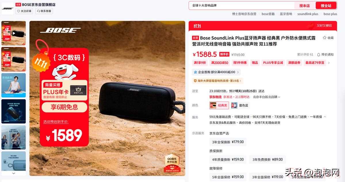 “双十一”是购买电子产品的好时机,通常各大电商平台会有不错的折扣和优惠活动。Bose SoundLink Plus 作为一款经典的、口碑很好的便携音箱,在双十一期间