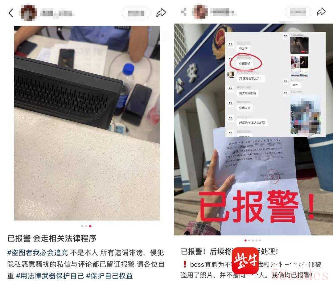 随着截图扩散,两位网友在社交媒体发声,均表示照片被盗用并已报警。据此前媒体报道,7月23日晚,一名主页信息介绍系模特的网友李女士发帖称,网传聊天记录中穿黑色裙子的照片是她本人,她被盗图了。