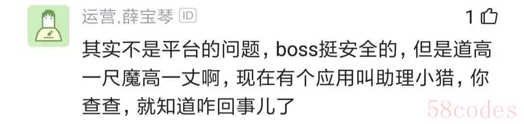 也有人替平台喊冤,说其实这不是平台的问题,Boss直聘还是挺安全的。但是道高一尺魔高一丈,现在有个应用叫助理小猎,大家查查就知道怎么回事了。