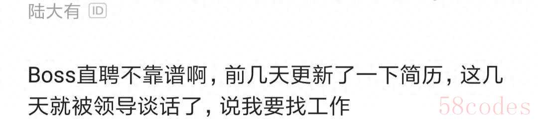但近日却有一个程序员爆料Boss直聘不靠谱,前几天刚更新了一下简历,这几天就被领导谈话了,说他要找工作。