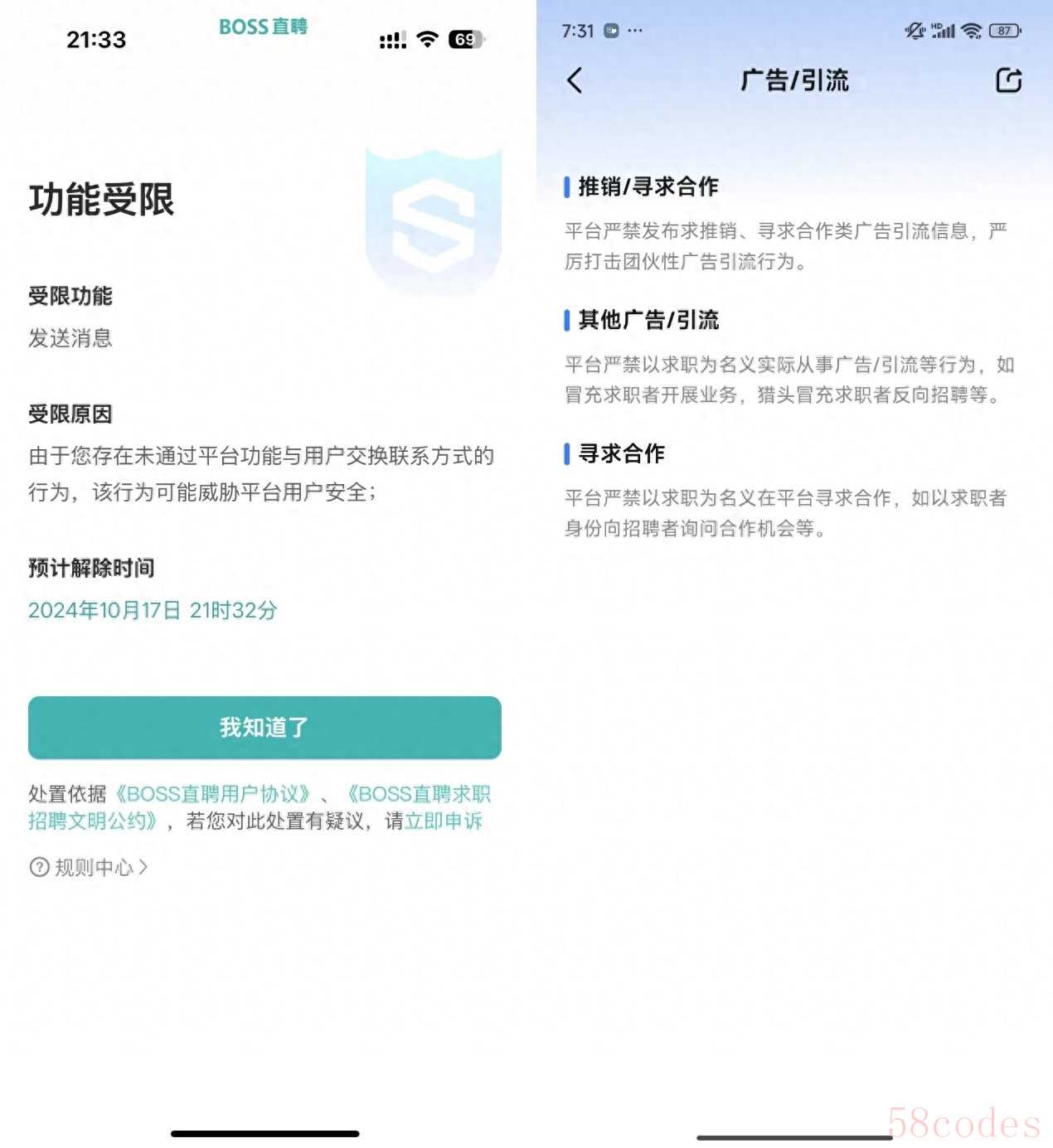 为打击此类行为,BOSS直聘对相关行为制定了严格的处置规则。求职者如在聊天过程中遇到发送广告引流信息、变体联系方式的行为,可直接举报该招聘者。