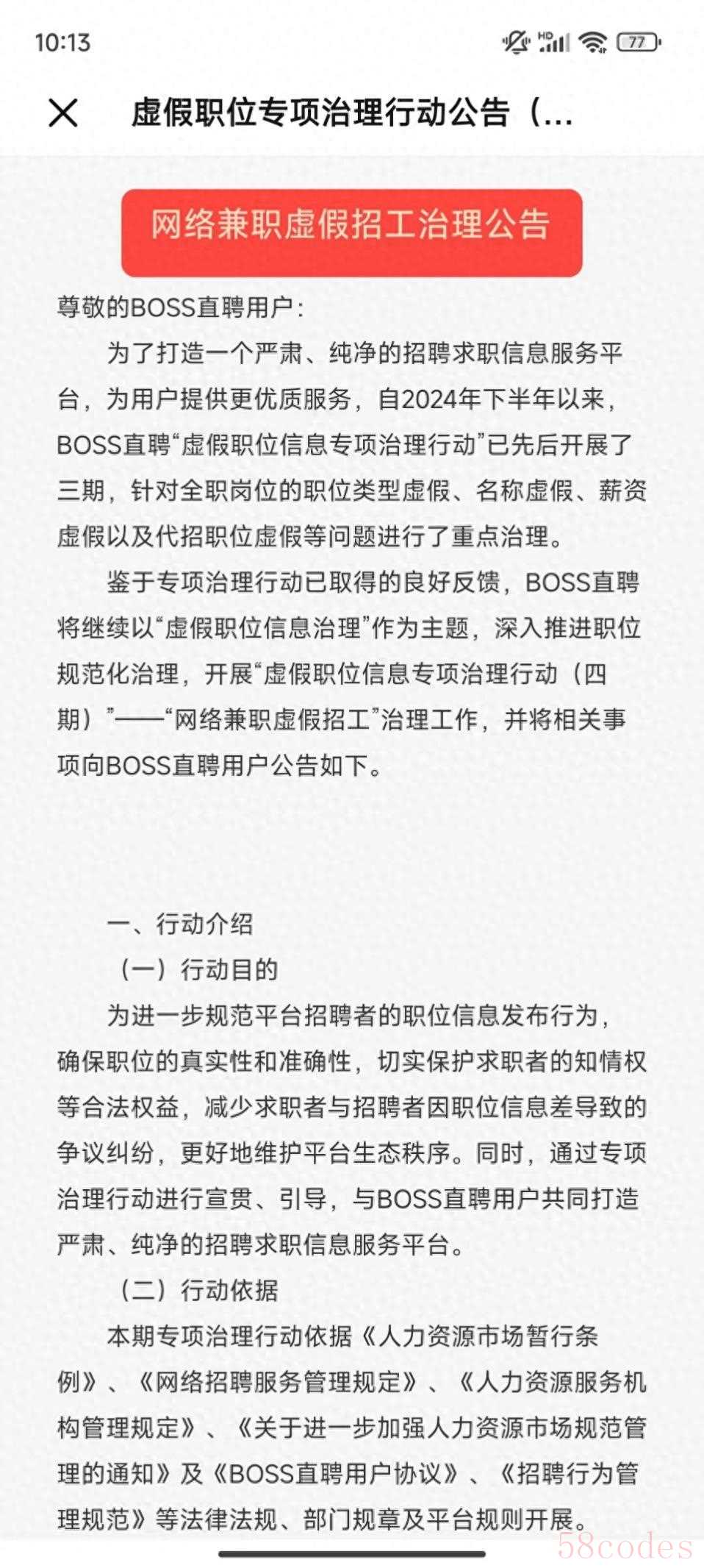 BOSS直聘近期开展了一次清理整顿行动,针对发布虚假网络兼职信息的账号进行了集中处理,共计处置了近一万个违规账号。此举是为了净化平台环境,保护求职者的利益,打击利用网络兼职名义进行的诈骗活动。