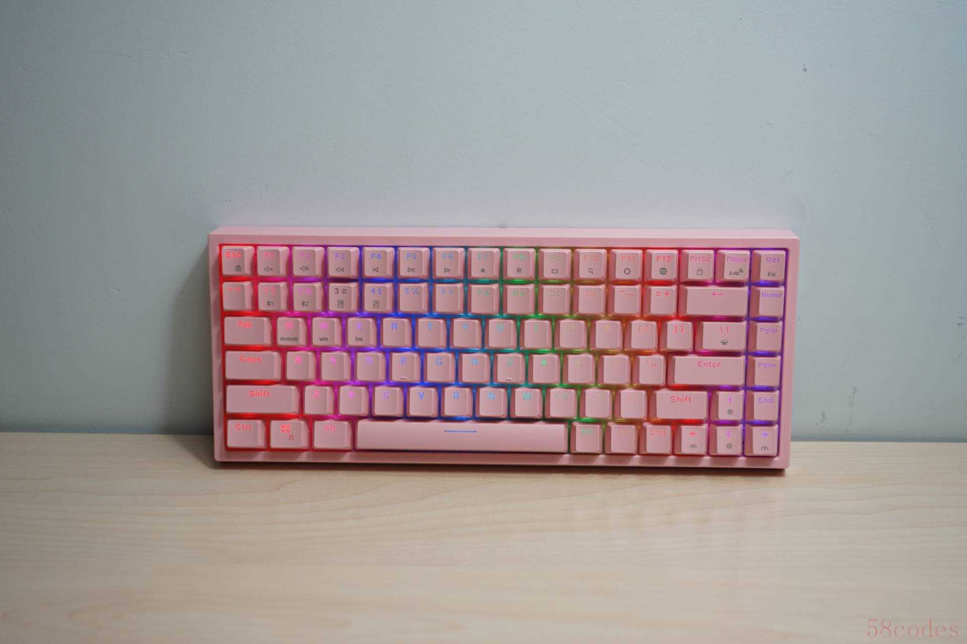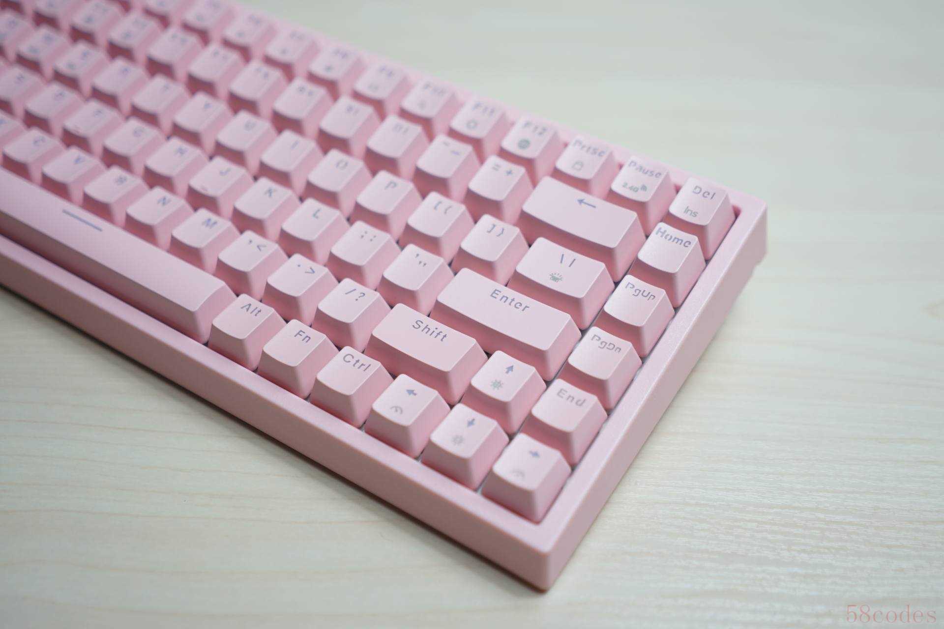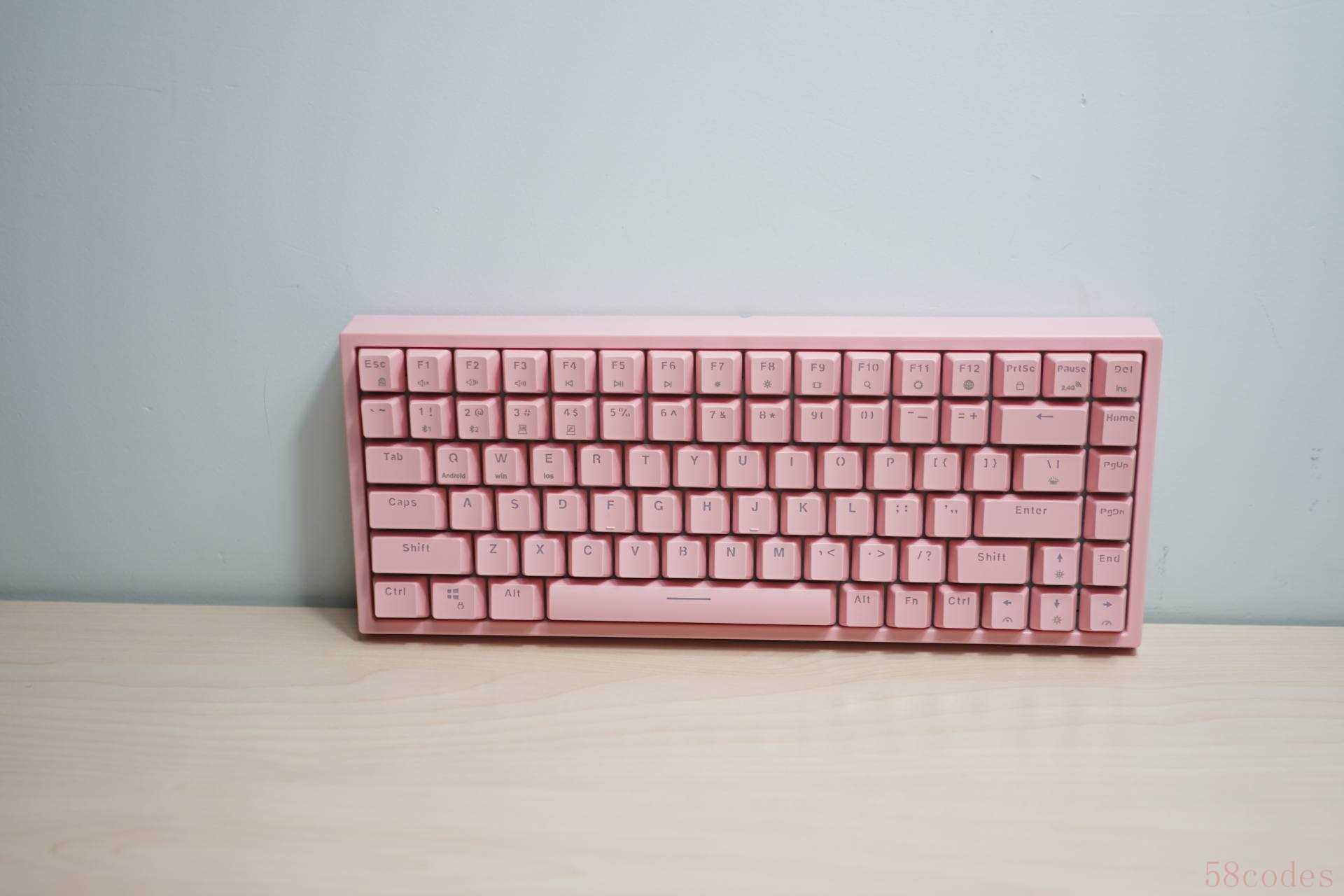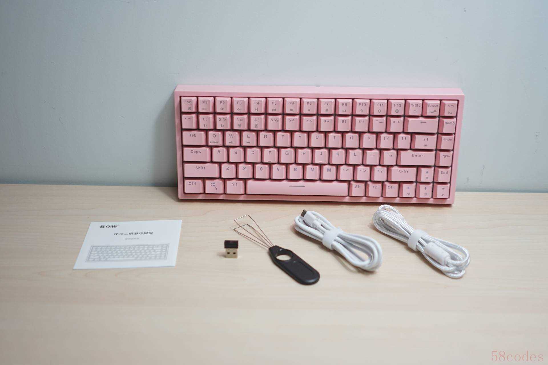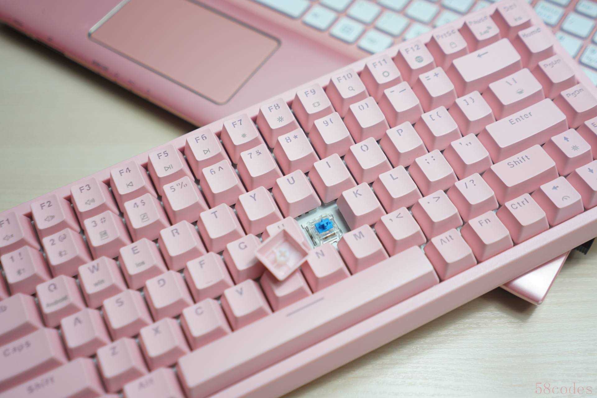 BOW 航世G08机械键盘共有两种配色,分别是航海蓝和粉色,轴体有青轴、红轴、茶轴三种可选。本人选择的是粉色青轴,实物的配色非常漂亮堪称颜值担当。