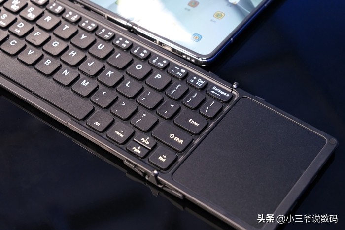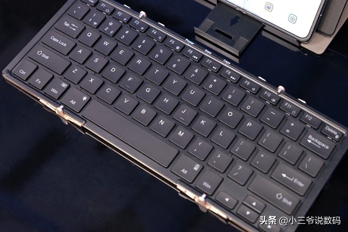 这款键盘的优点当然就是小巧便携,自带隐藏式磁吸支架也更加方便,缺点嘛就是按键有点小,打字的时候手比较局促。