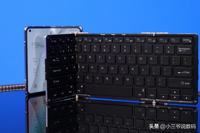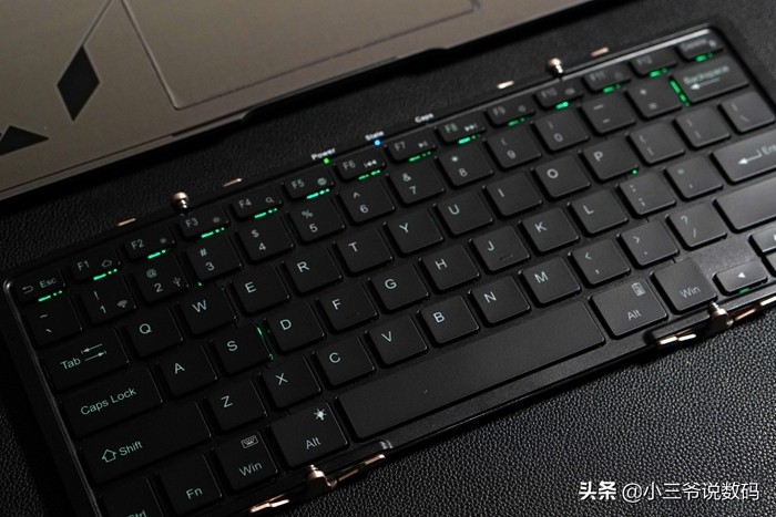 这款键盘为塑料材质,采用磨砂工艺处理,不易沾染指纹,跟上个键盘一样,采用了三折式设计,不过体积更小,而且采用了TypeC充电口。