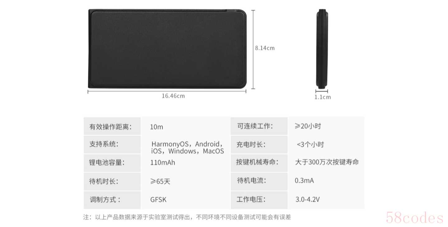 这款键盘兼容 HarmonyOS、安卓、iOS、Windows 和 macOS 系统;右下角有一个迷你触摸版(iOS 不支持);可连续工作超 20 小时。