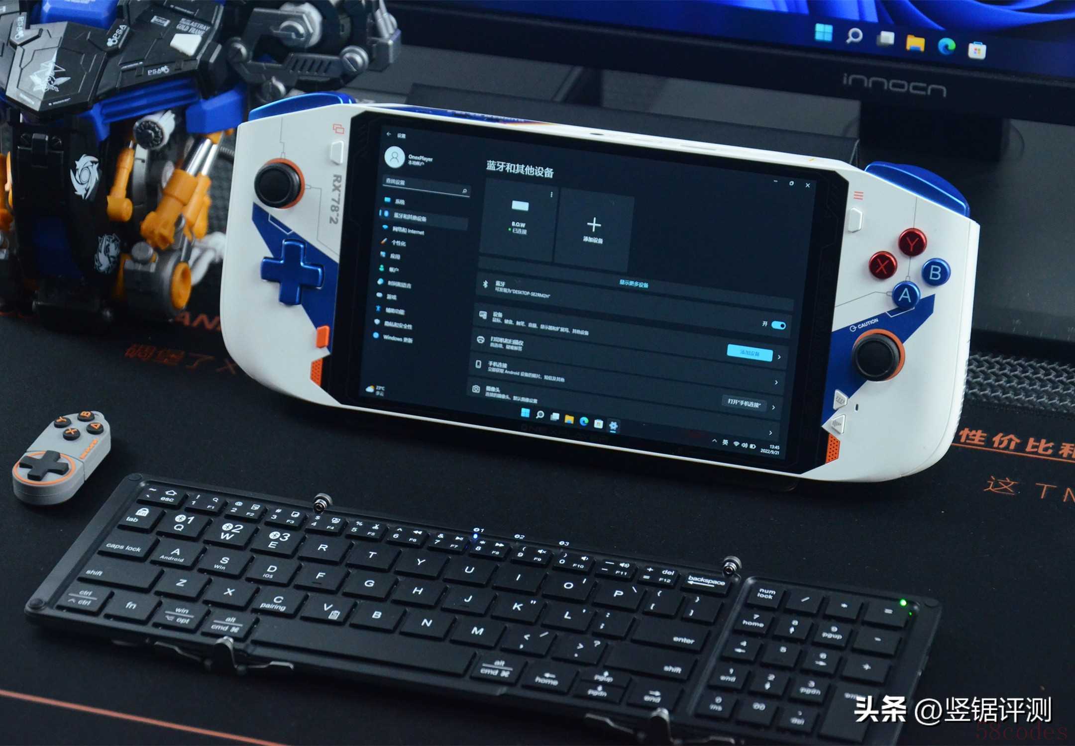 事情是这样的,近段时间因为工作调动需要出差一段时间,而这次出差我打算携带上图这台PC掌机用于出差时的简单办公(接收文档、简单PS图片等)以及工作结束后用来玩游戏,放松、打发下时间。想法是美好的,但实现时却出现了问题,那就是PC掌机虽然搭载了Windows系统,但其定位毕竟是掌机,整机外观是没有实体键盘的,这样用来办公就是个问题了,总不能再带个键盘出差吧,再加上PC掌机所具备的接口不多,所以我最后敲定的解决方案就是入手一款便携式的蓝牙键盘,最好还带支架设计。