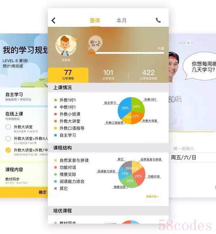 更重要的是,BOXFiSH会根据每个孩子的不同年级、起点水平、学习目标、学习时间等智能规划课程计划。智能安排每天的学习任务(包含休息),智能分配上课用的课程和自学课程、学校同步课程和培优课程。并根据学生学习中反馈出的问题不断调整(如发音不准,文章看不懂或太轻松等)。