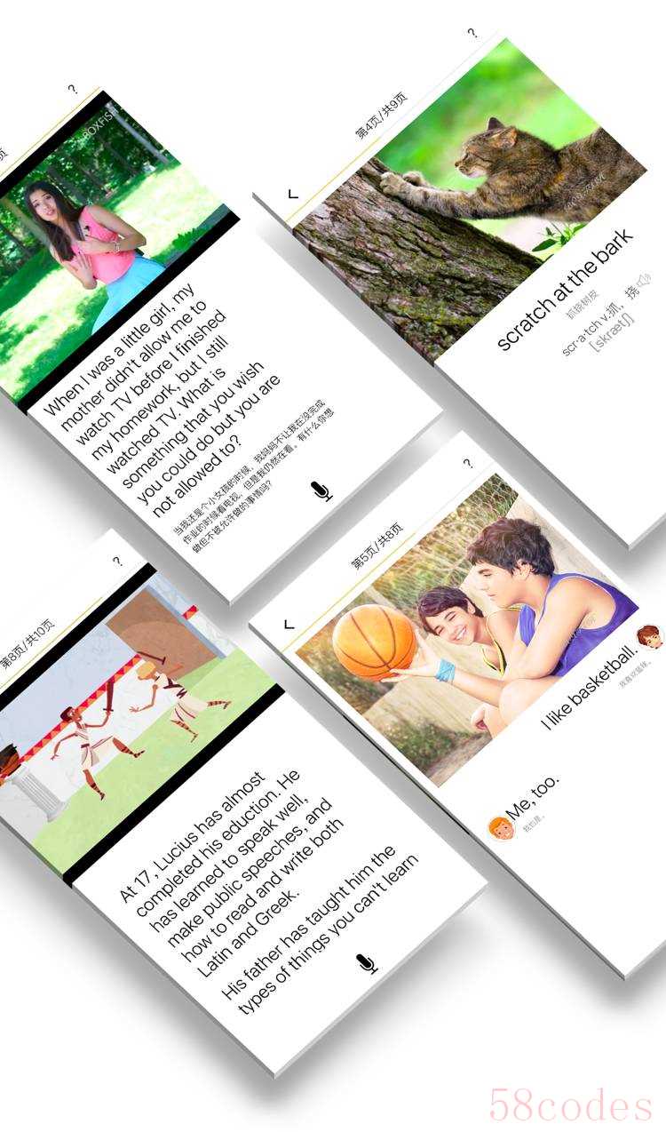 每个场景对话、话题文章都由“精美视频和动画”导入学习,总量超过10000个。