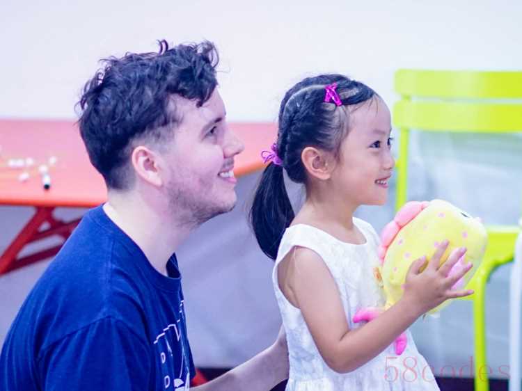 很多家长在一开始就想把宝宝放到外国人的圈子里,但是刚开始的时候呢,孩子会比较胆小,会容易产生阴影。其实外教和他互动不需要着急。 陪他一起看着好玩,形成他这种语感和适应这种环境就好了。他一定会想:我也想和那个可爱的大哥哥说说话。慢慢地,达到一定阶段之后,再跟他说,小孩就会更高兴张开嘴互动起来。
