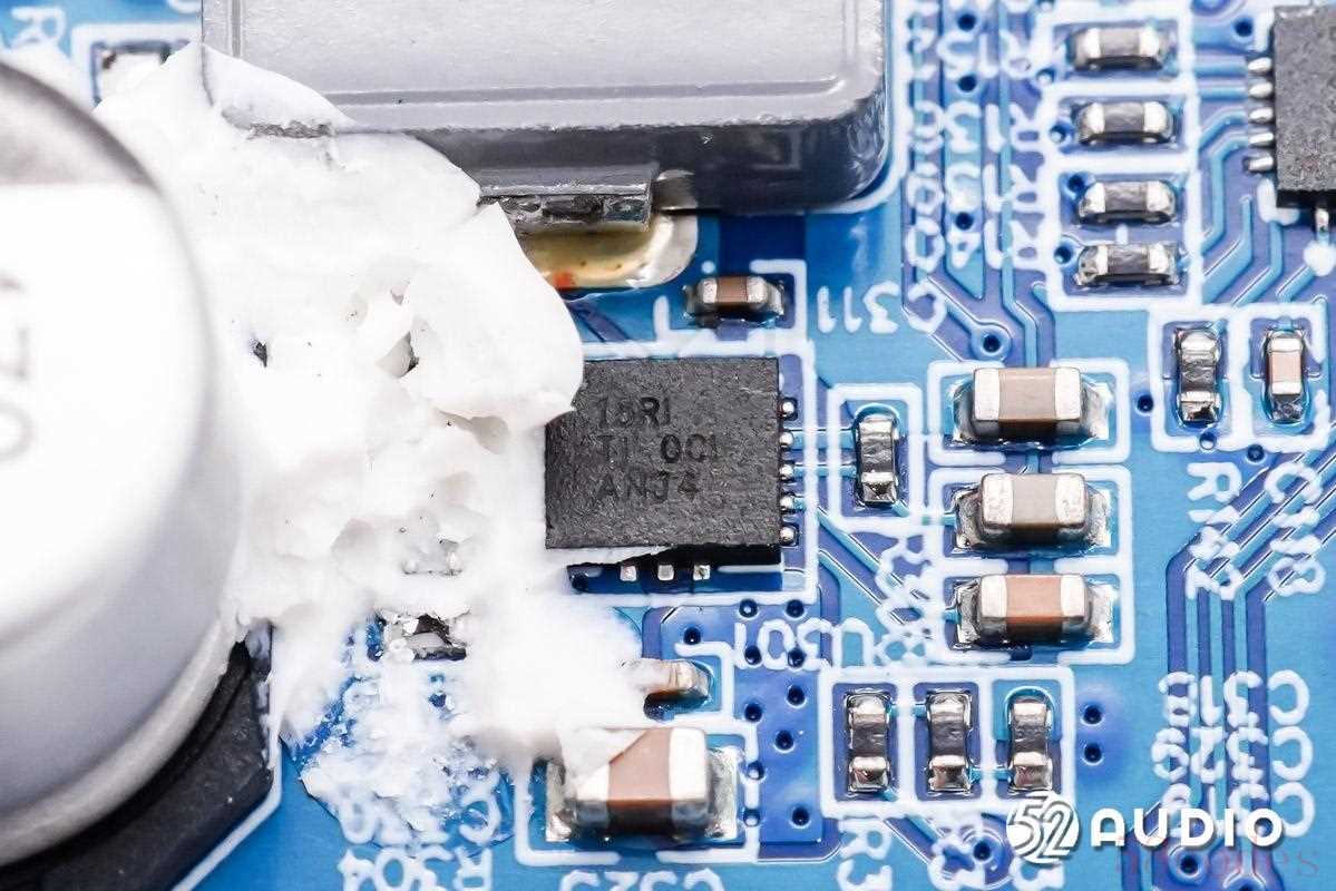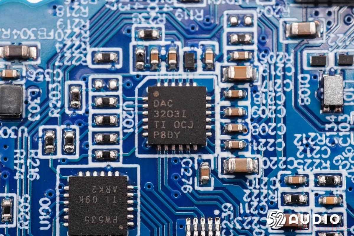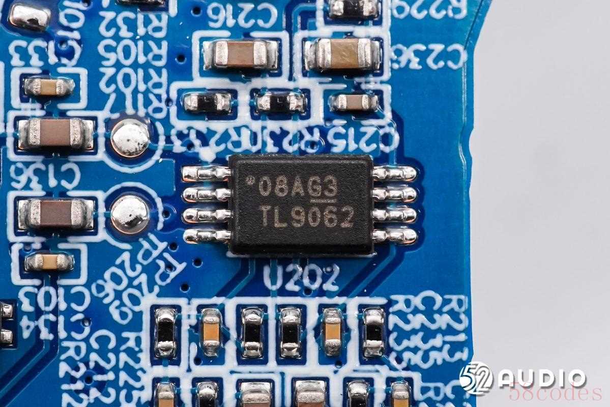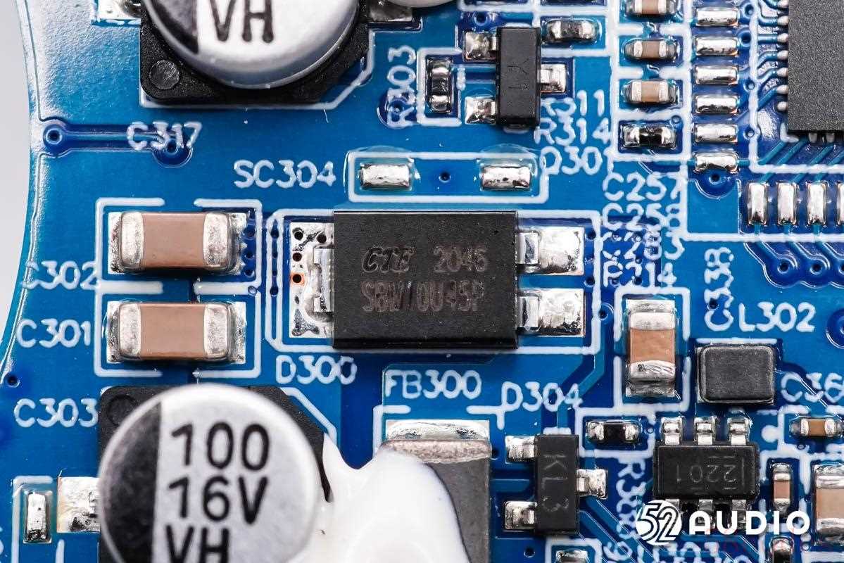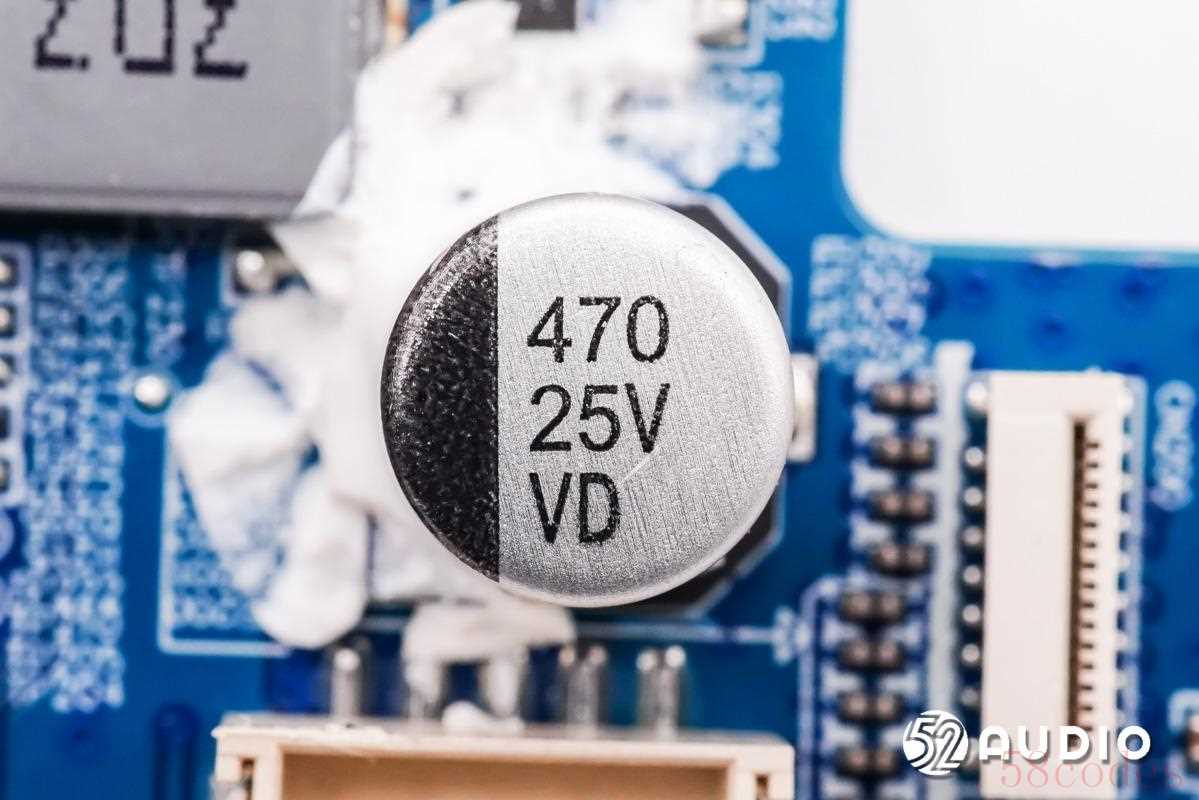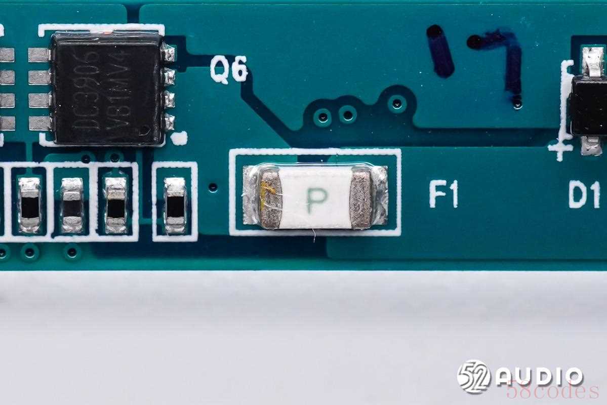 后腔设置有锂电池和主板单元,2串锂离子电池组容量3100mAh,来自广东力科新能源。主板上蓝牙模块设置在独立的邮票板上,采用了高通QCC5127蓝牙音频SoC,内置强大的四核处理器,双核32位音频应用子系统,双核高通Kalimba DSP音频系统;外围配备旺宏25U12835F 128Mb位串行NOR闪存,爱普APS1604M-SQ储存器。