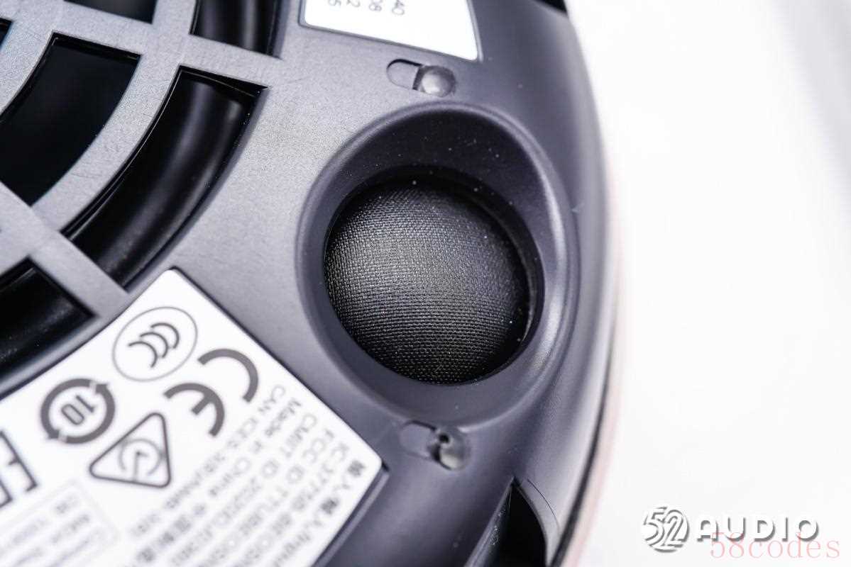 内部盖板通过螺丝固定,设计“蛛网状”出音孔,侧边还设置有一颗小的高音喇叭单元。