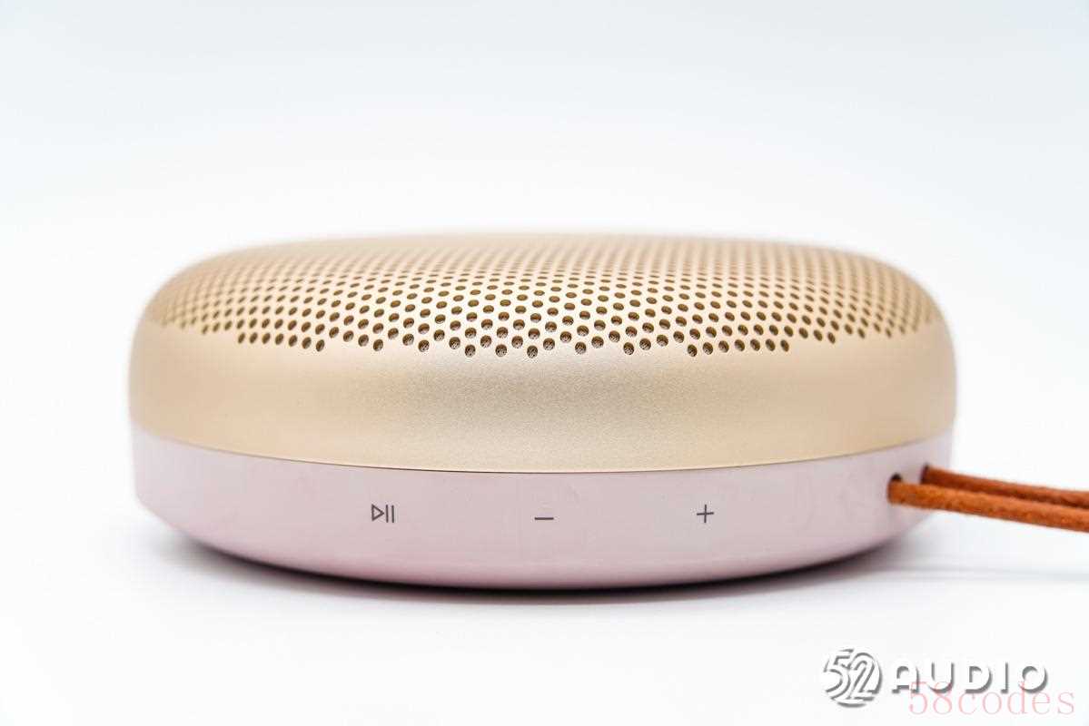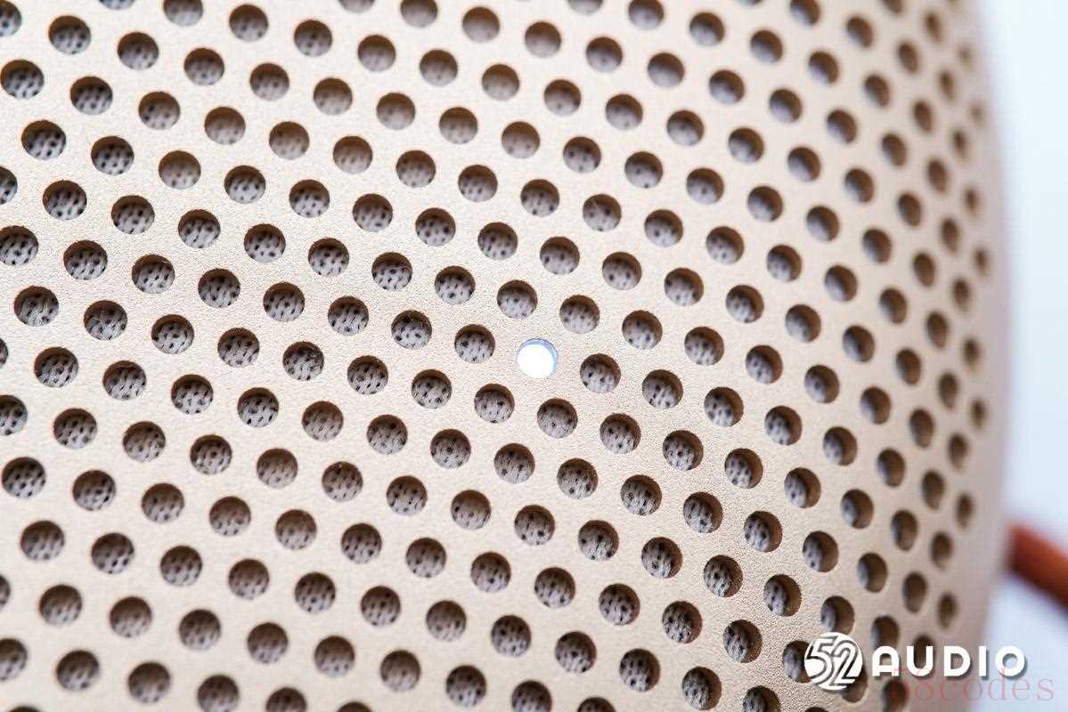 B&O A1 GEN2蓝牙音箱顶部出音孔盖板特写,全新开孔模式,提供更好的声音扩散性。