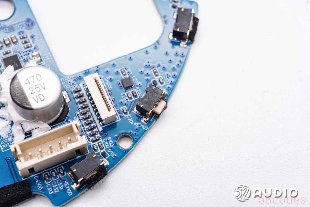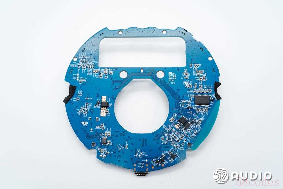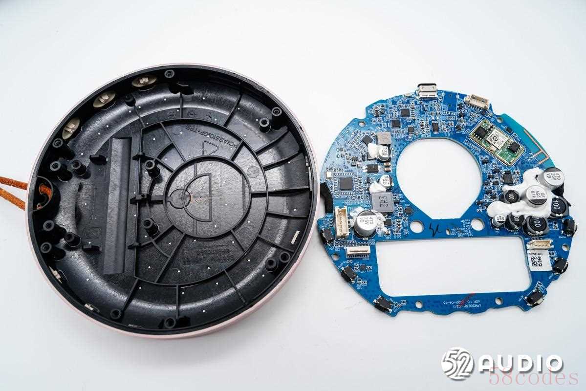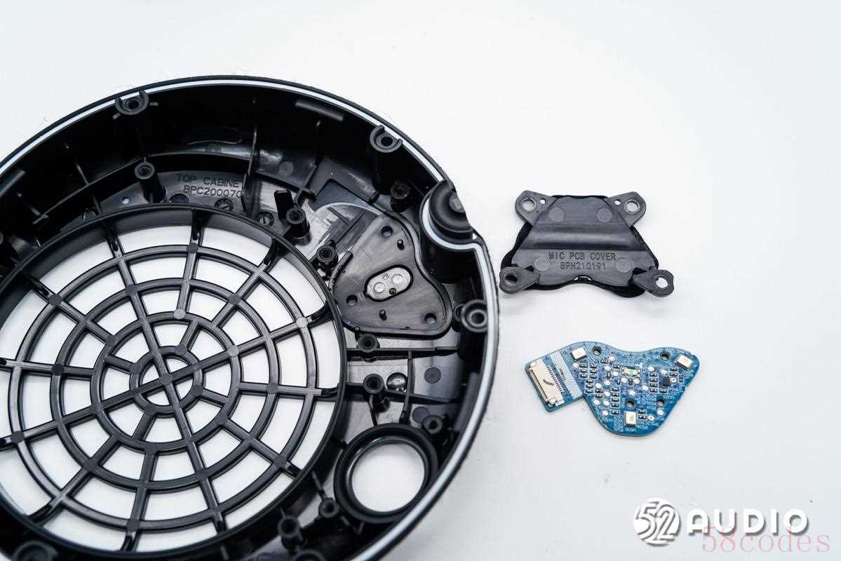 内部结构配置方面,前腔内搭载了90mm低音单元和25mm高音喇叭;设置有麦克风小板,设置三颗MEMS麦克风组成是拾音阵列,搭配后腔主板上的楼氏电子IA8201音频边缘处理器,提供清晰、干净、精准的收音效果。