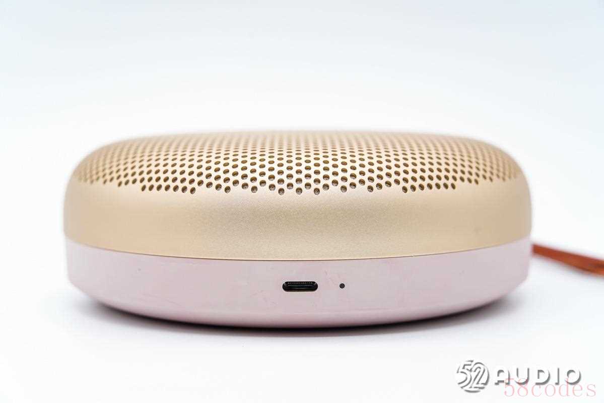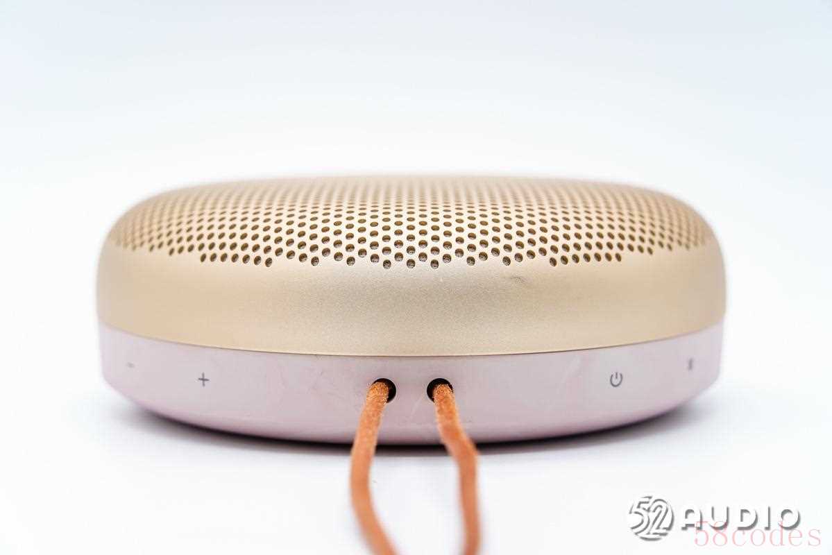 B&O A1 GEN2便携式无线蓝牙音箱外观上延续了上代的经典“圆饼状”设计,造型美观,边缘柔和,握持舒适。金色盖板采用全新开孔模式,提供更好的声音扩散性。还设计有挂绳孔,搭配皮质挂绳,提升外出携带的便携性。