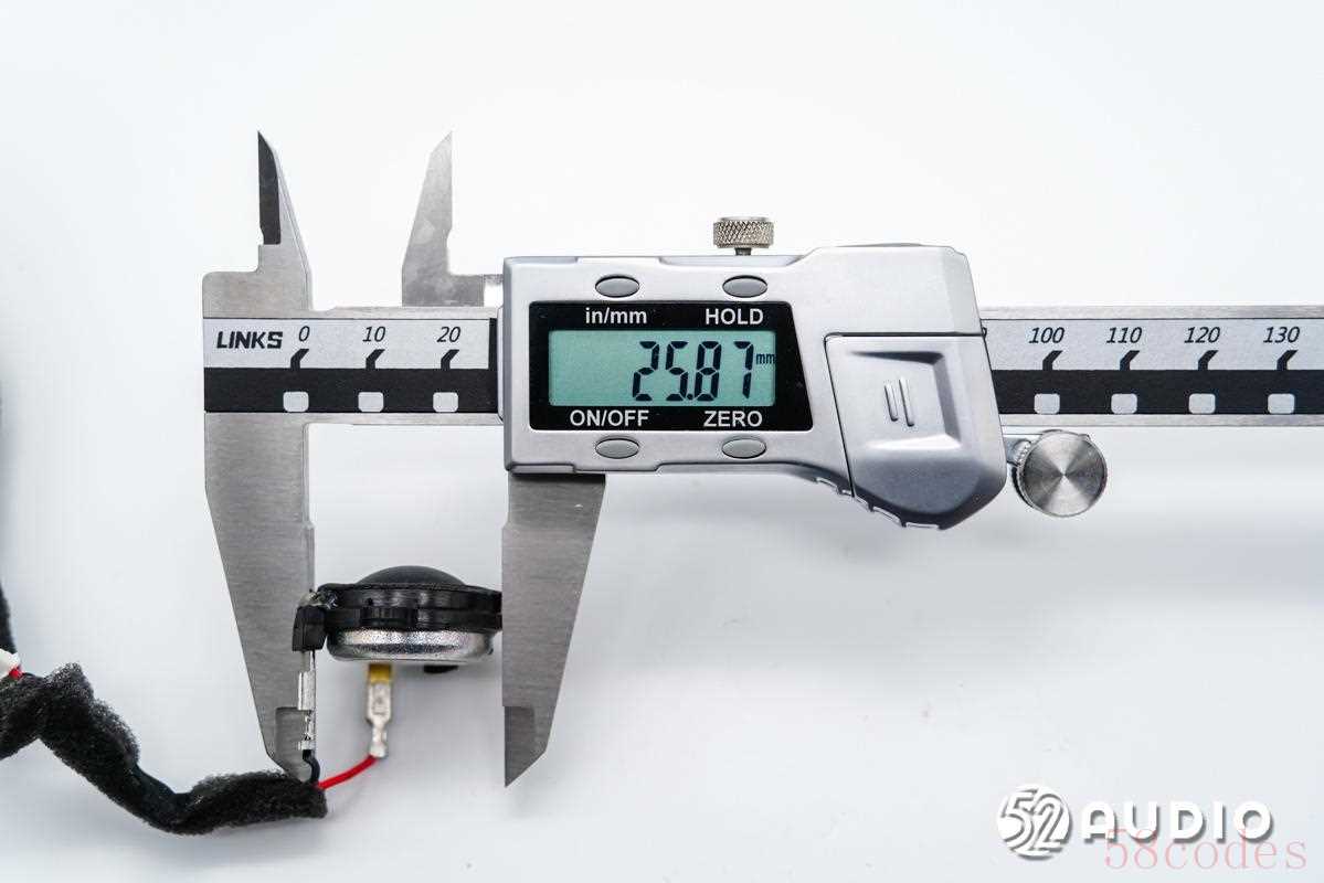 经我爱音频网实测,高音喇叭尺寸约为25.87mm。