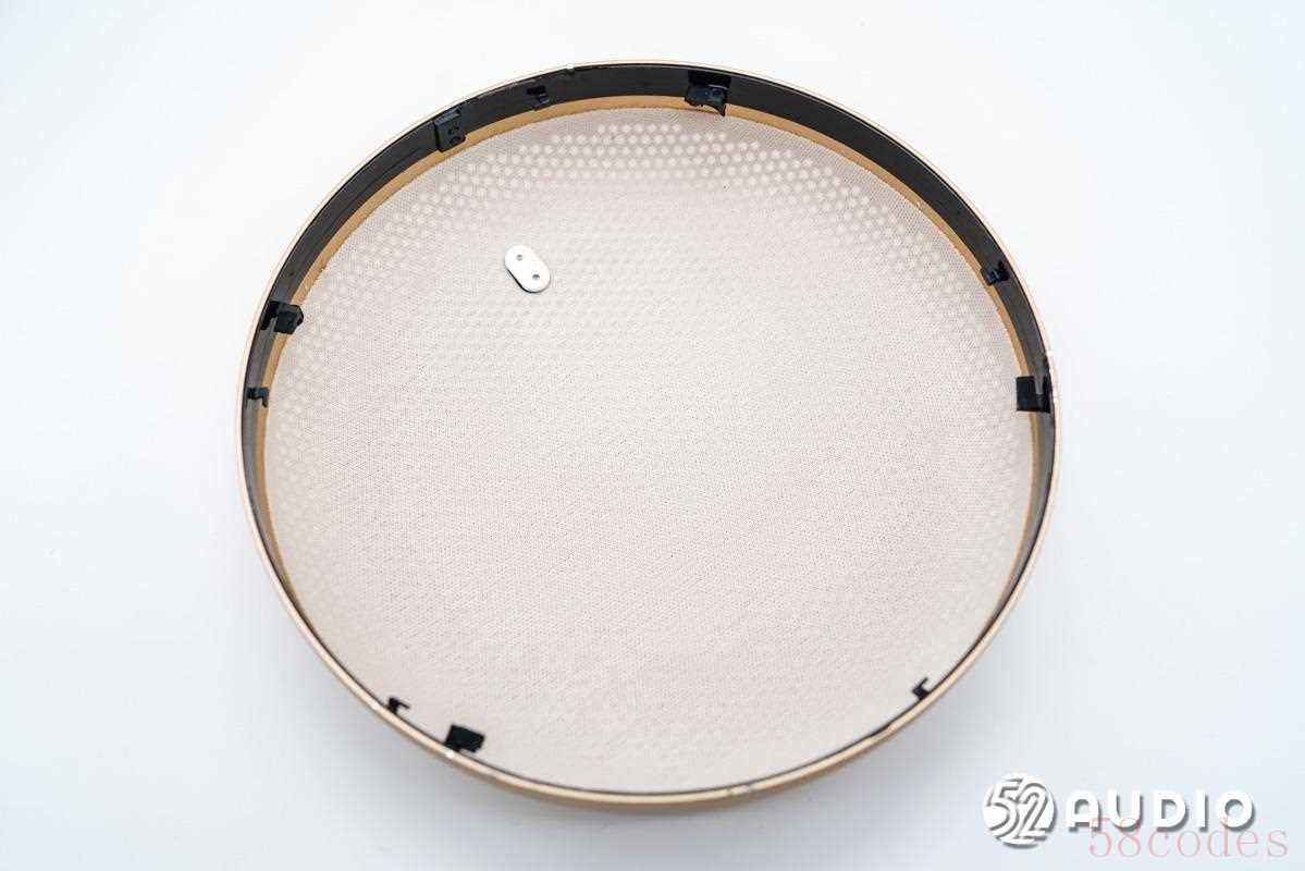 出音孔盖板内侧结构一览,设置有一层细密防尘网。