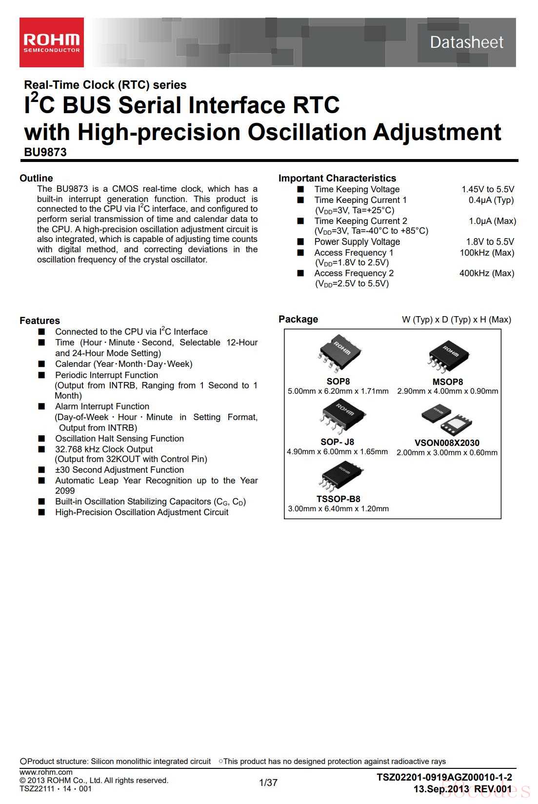 ROHM BU9873 I2C接口的实时时钟芯片,具备高精度振荡器调节。