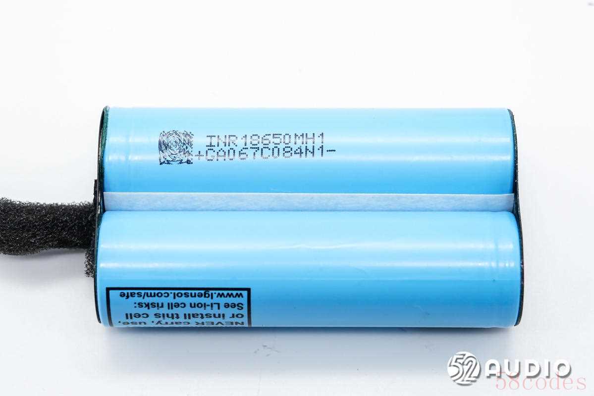 撕开外部隔热塑胶,内部由两颗圆柱形锂电池串联。