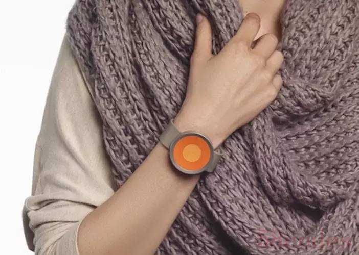 看起来像一个超大的上衣纽扣——或者像一个橙色钟面的时髦智能手表。在其防水、滚铝电镀的外观下,有一个触觉电机作为运动传感器。