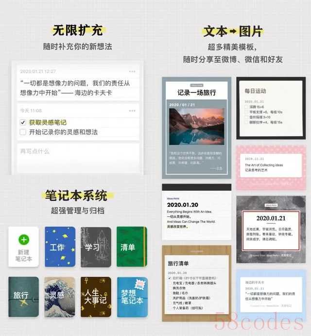 既有专为整理控设计的“笔记本系统”,又有充满细节的“ 图片版式”,更重要的是“加密”和“备份功能”,让你牢牢掌握自己的笔记档案。iDaily 2020年倾情新作,既美丽又好用的笔记App限时免费中。