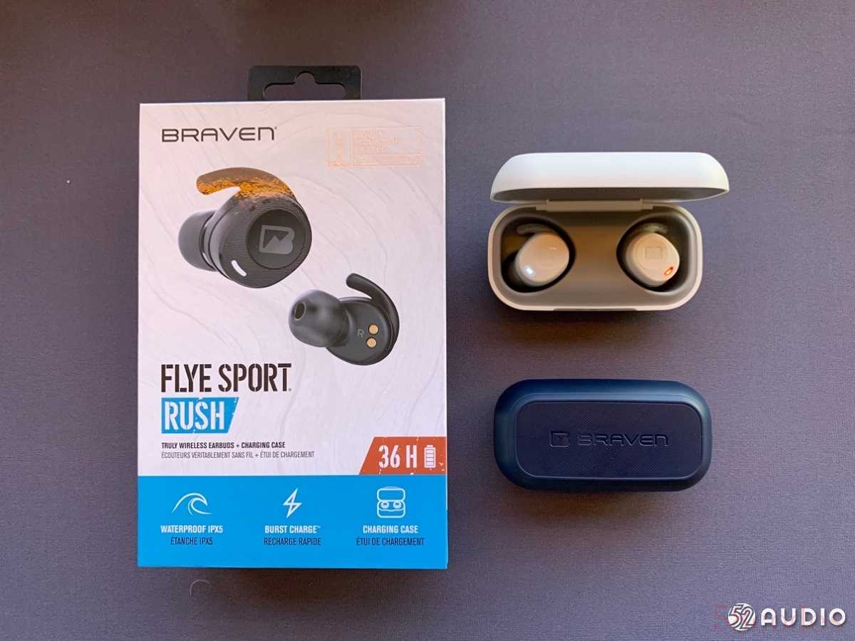 Flye Sport Rush耳机腔体上也有指示灯,还有BRAVEN的品牌LOGO;加上充电仓简洁的外观和同色LOGO,这款TWS运动耳机整体设计还是比较具有特色的。