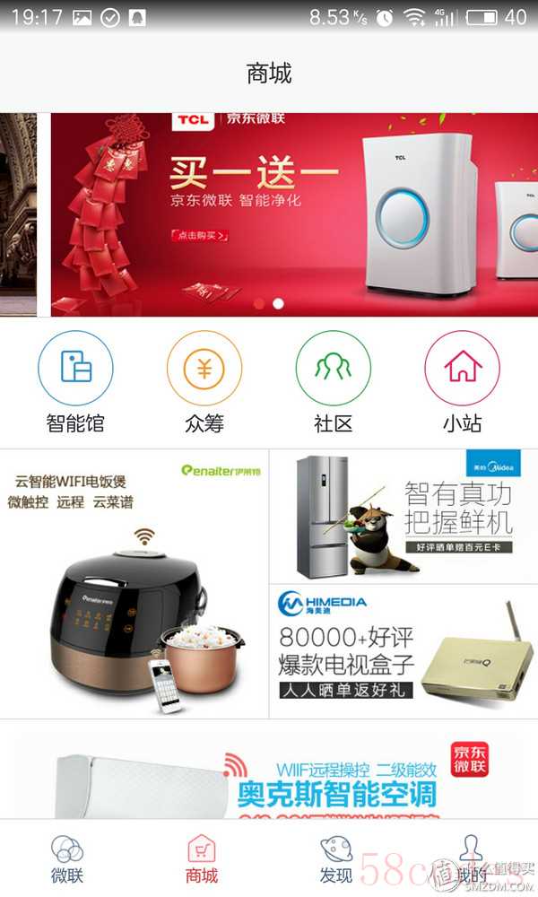 商城页面,其实就是京东一个专类购物页面,可以购买京东众筹类的产品和微联相关的一些智能产品,另外就是社区讨论等等。