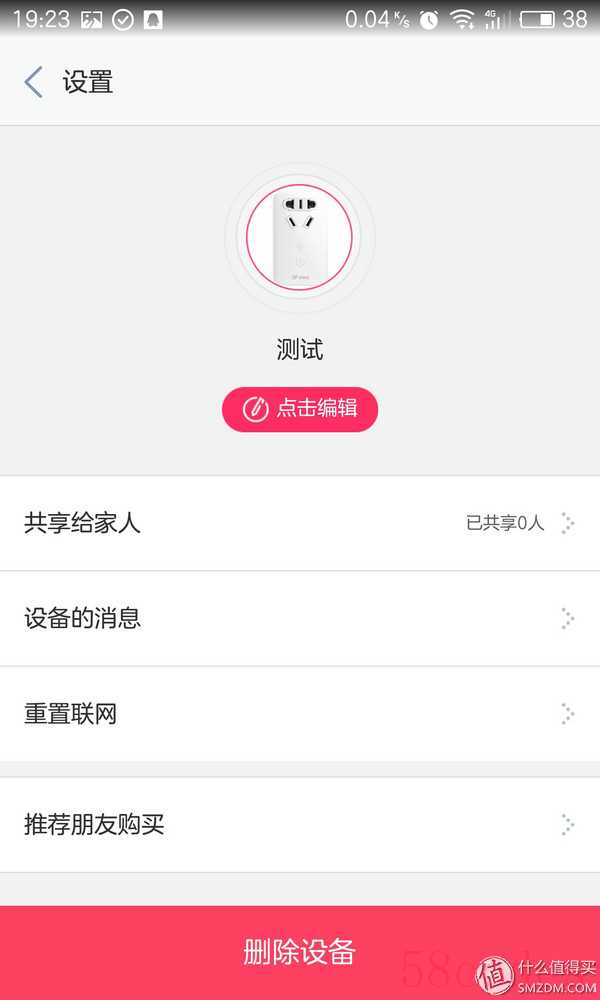可以给你的设备命名,便于分辨,也可以把控制权限共享给家人,还有就是接受设备的状态消息(这个插座应该没啥消息可以接收,因为测试时间短,没发现有啥消息)
