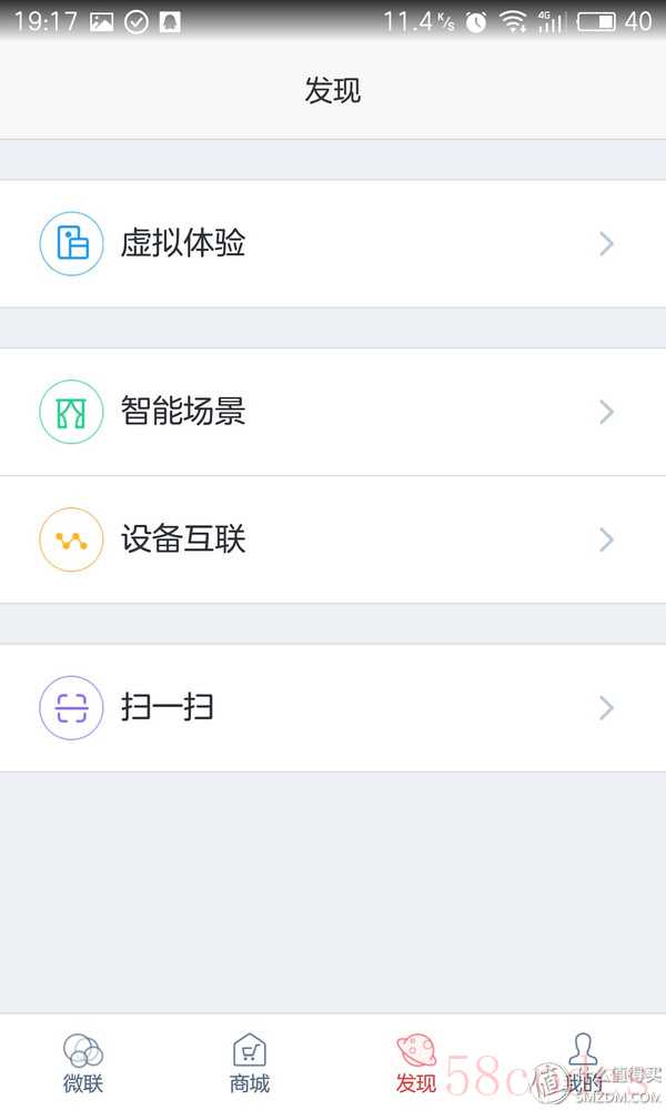 比较值得说下的就是发现页面,其中虚拟体验就是让你模拟控制下京东微联可连接的相关设备,有空调、音箱、窗帘、插座等等,,而只能场景如下: