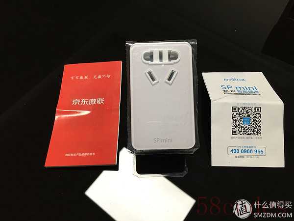 1. "BroadLink WiFi SP Mini 插座本体 x 1:" 看到实物了,确实如其名,“Mini”,体积非常小巧,和市面上常见的智能插座